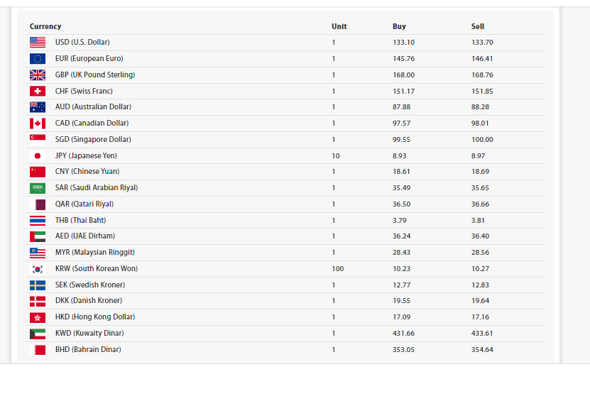 त्यसैगरी, जापानी येन १० को खरिददर ८ रुपैयाँ ९३ पैसा रहेको छ भने बिक्रीदर ८ रुपैयाँ ९७ पैसा रहेको छ । यसैगरी साउदी रियाल एकको खरिददर ३५ रुपैयाँ ४९ पैसा रहेको रहेको छ भने, बिक्रीदर ३५ रुपैयाँ ६५ रुपैयाँ रहेको राष्ट्र बैंकले जनाएको छ ।
