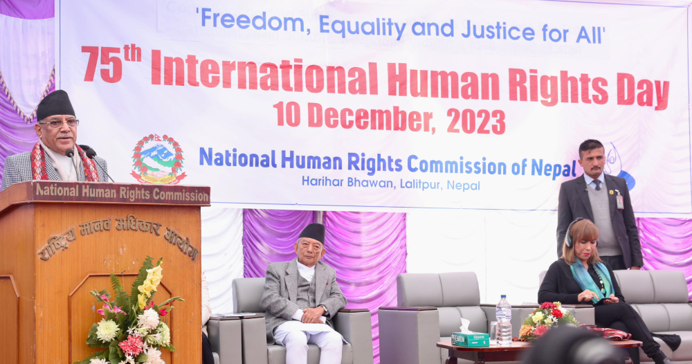 राष्ट्रिय मानव अधिकार आयोगले ७५ औं अन्तर्राष्ट्रिय मानव अधिकार दिवसका अवसरमा आज यहाँ आयोजना गरेको कार्यक्रममा प्रधानमन्त्री दाहालले आयोगका सबै सिफारिस कार्यान्वयनका लागि आफूले प्रयत्न गर्ने बताए।