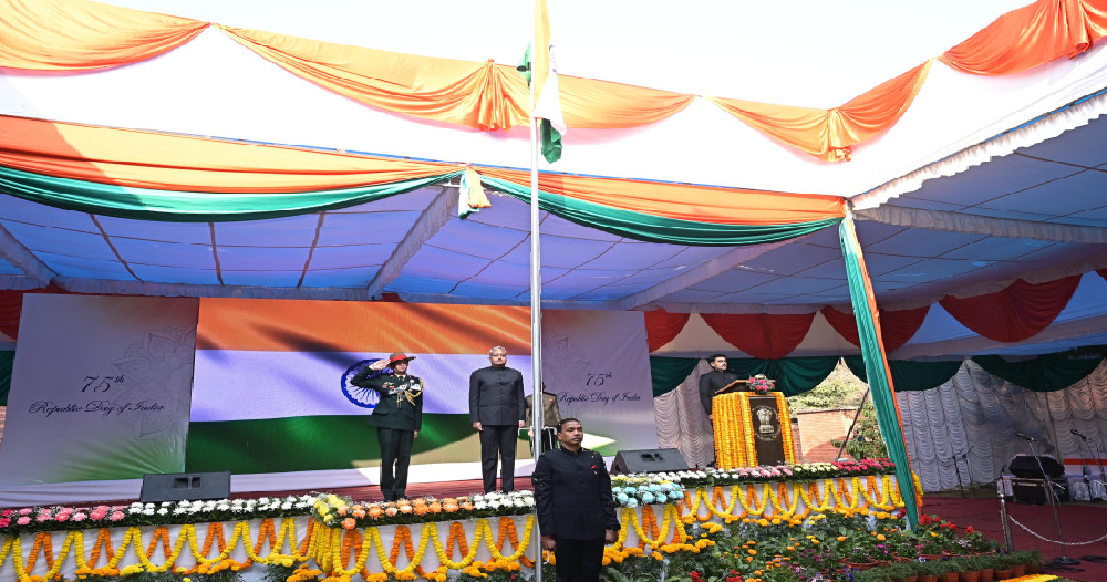 काठमाडौं । नेपालस्थित भारतीय राजदूतावासले भारतको ७५औँ गणतन्त्र दिवस मनाएको छ । काठमाडौंस्थित भारतीय दूतावासामा आयोजित समारोहमा नेपालका लागि भारतीय राजदूत नवीन श्रीवास्तवले भारतको राष्ट्रिय झण्डा झण्डोत्तोलन गरी कार्यक्रमको शुभारम्भ गरे ।