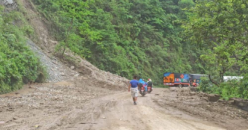 मुग्लिन (चितवन) । पहिरोका कारण पृथ्वीराजमार्ग एकतर्फी रुपमा सञ्चालन भएको छ ।