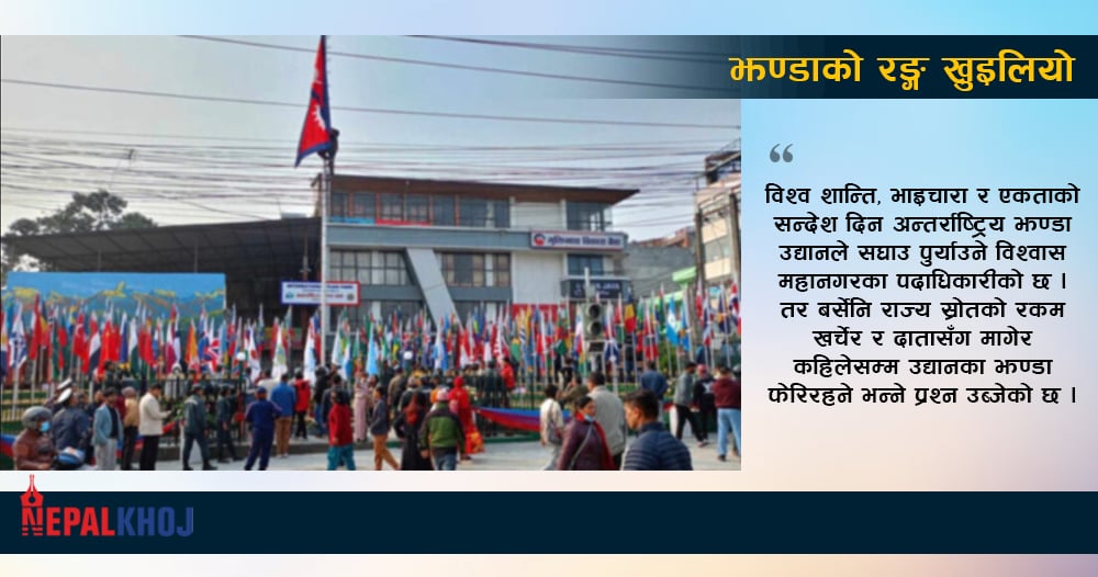 उद्घाटन भएको सात महिना नबित्दै पर्यटकीय राजधानी पोखराको महेन्द्रपुलमा रहेको ‘अन्तर्राष्ट्रिय झण्डा उद्यान’मा नयाँ झण्डा फेरिएको छ । संविधान दिवसका अवसरमा गत साता उद्यानमा रहेका एक सय ९३ देशका पुराना झण्डा हटाएर नयाँ राखिएको हो । गत फागनु सात गते प्रजातन्त्र दिवसको अवसर पारेर उक्त झण्डा उद्यानमा राखिएको थियो ।