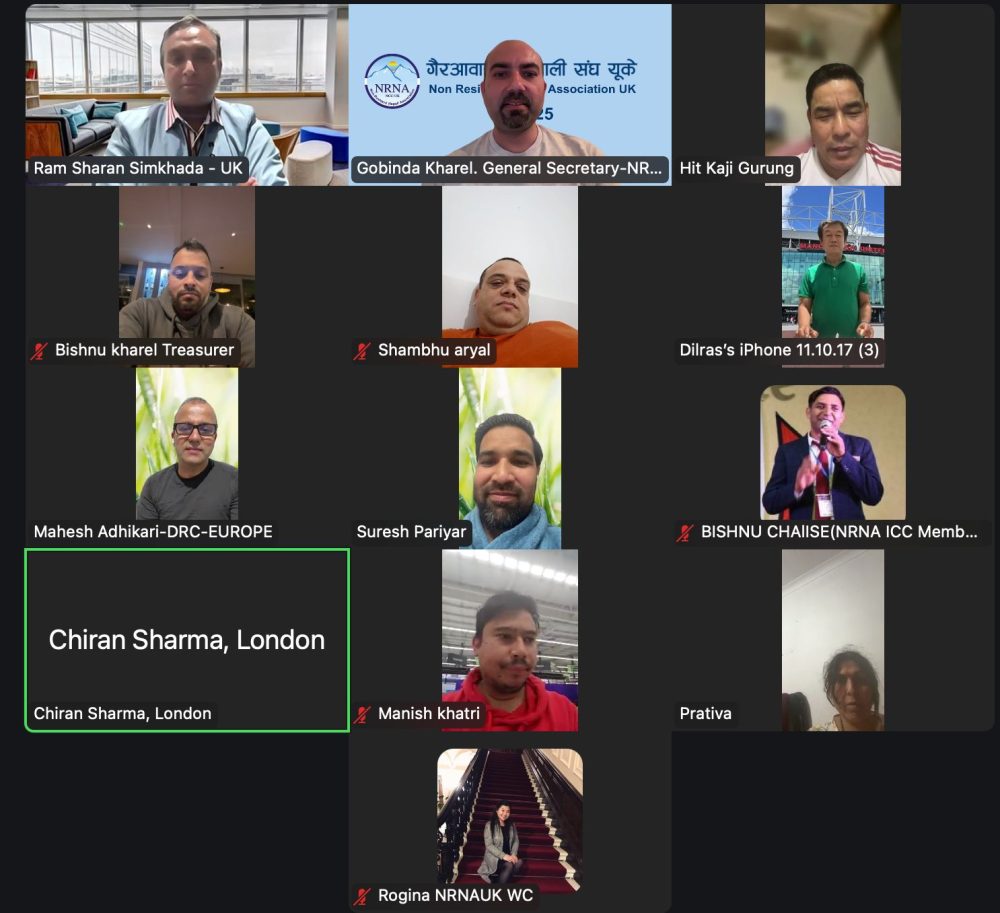संघका महासचिव गोविन्द खरेलले संचालन गरेको बैठकले उपाध्यक्ष सुरेश परियारको संयोजकत्वमा आर्थिक संकलन समिति गठन गरेको छ । बैठकमा गैरआवासीय नेपाली संघका उपाध्यक्ष रामशरण सिमखडा, यूरोप क्षेत्रीय उपसंयोजक महेश अधिकारी, आइसीसी सदस्यहरु चिरन शर्मा, विष्णु चालिसे, दिलराज गुरुङ, गैरआवासीय नेपाली संघ यूकेका पदाधिकारी तथा सदस्यहरु, स्कटल्याण्ड राज्य परिषदका अध्यक्ष दिवाकार पाण्डे, इंल्याण्ड राज्य परिषदका अध्यक्ष शम्भु अर्याल समेतको उपस्थिति थियो ।