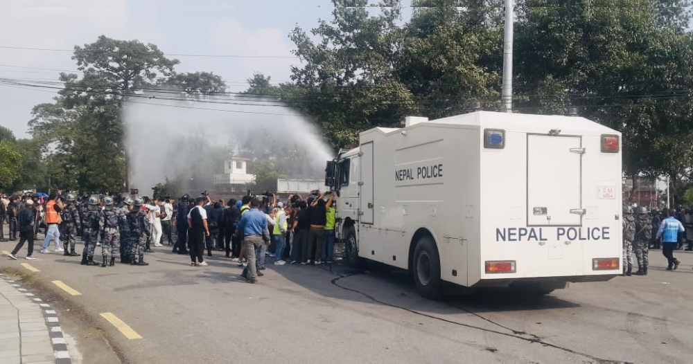 जिल्ला प्रशासन कार्यालय, कास्कीले पोखरा शहिदचोक र ग्रैहापाटन आसपासका क्षेत्रमा आज बिहानदेखि निषेधाज्ञा जारी गरेको थियो । सहकारीको रकम अपचलनको आरोपमा पक्राउ परेका रास्वपाका सभापति लामिछानेलाई अदालत उपस्थित गराउने क्रममा कार्यकर्ताले निषेधित क्षेत्र तोडेर प्रर्दशन गर्न थालेपछि प्रहरीले प्रदर्शनकारीमाथि पानीको फोहोरा प्रहार गरेको छ ।