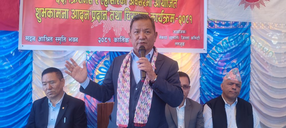 नेपाल कम्युनिष्ट पार्टी (एमाले) जिल्ला कमिटीद्वारा दसैँ, तिहार, नेपाल संवत्, छठका अवसरमा बेँसीसहर नगरपालिका–८ मा आज बिहान आयोजित कार्यक्रममा उहाँले सरकारले बाढीपहिरो पीडित, सहकारीपीडित, कृषक, व्यवसायी, निर्माण व्यवसायीलगायत सबै पेसाकर्मीलाई सहयोग पुग्नेगरी सरकारले काम गरिरहेको बताए ।
