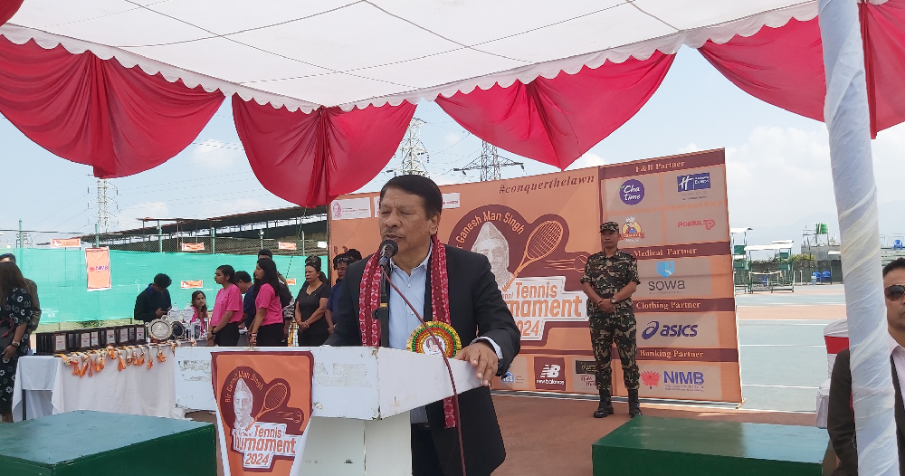 गणेशमान सिंह प्रतिष्ठानद्वारा आज यहाँ आयोजित वीर गणेशमान चौथो राष्ट्रिय टेनिस प्रतियोगिताको समापन समारोहमा उनले खेलकुदको माध्यमबाट सामाजिक रुपान्तरणमा योगदान पुग्नाका साथै अनुशासित जनशक्ति विकासमा पनि सहयोग पुग्ने बताए । उनले विद्यालय तहदेखि नै टेनिसलगायत खेलकुदलाई प्राथमिकताका साथ कार्यान्वयन गर्न राष्ट्रिय खेलकुद परिषद्लाई सुझाव दिए ।