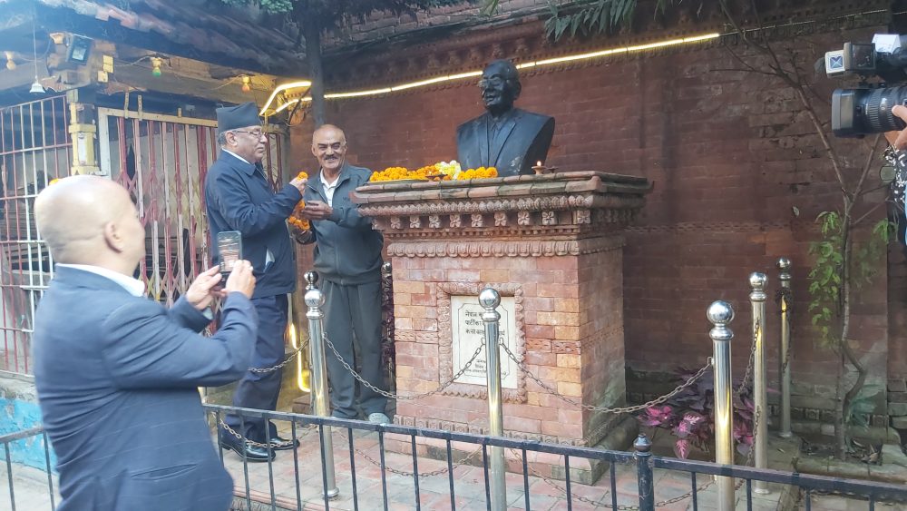 पाटन (ललितपुर) । नेपाल कम्युनिष्ट पार्टी (माओवादी केन्द्र)का अध्यक्ष तथा पूर्वप्रधानमन्त्री पुष्पकमल दाहाल ‘प्रचण्ड’ले कुम्भेश्वरमा स्थापना गरिएको कम्युनिष्ट पार्टीका संस्थापक नरबहादुर कर्माचार्यको सालिकमा माल्यार्पण गरेर उनको जन्मशताब्दीका कार्यक्रमको शुभारम्भ गरेका हुन् ।