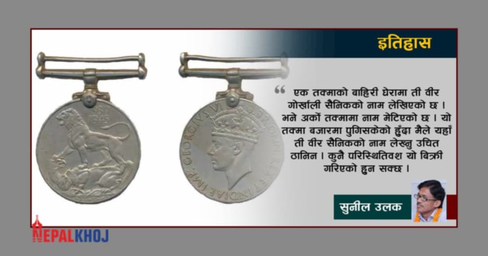 यो तक्मा कसैको वीरताको निशानी हो । थाहा छैन कसरी बजारमा बिक्यो । दोश्रो विश्व युद्धकाे समय २८ दिन कठाेर रुपमा युद्धको मोर्चामा खटिएका सैनिकहरुले प्राप्त गर्ने यो तक्मा अहिले Amazon तथा Ebay मा पनि बिक्रीमा राखिएको भेटिन्छ । मैले पनि यस्तै कतै खरिद गरेको हुँ । अहिले मसंग दुइ वटा छन् । एक तक्माको बाहिरी घेरामा ति वीर गोर्खाली सैनिकको नाम लेखिएको छ । भने अर्को तक्मामा नाम मेटिएको छ ।