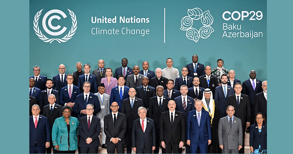 बाकु (अजरबैजान) । संयुक्त राष्ट्रसंघीय संरचना महासन्धि पक्ष राष्ट्रहरूका राष्ट्रप्रमुख र सरकार प्रमुख सम्मिलित शिखर सम्मेलनमा जलवायु परिवर्तनप्रति चिन्ता व्यक्त गर्दै कार्बन उत्सर्जनको न्यूनीकरणमा जोड दिइएको छ । बाकुमा जारी शिखर सम्मेलन, कोप–२९ मा सहभागी वक्ताहरूले जलवायु परिवर्तनका कारण बढ्दै गएको तापमान र हरित ग्यास उत्सर्जन रोक्नका लागि विश्व समुदायको साझा ऐक्यबद्धतासहितको पहल आवश्यकता औँल्याए । उनीहरूले जलवायु परिवर्तनको असरबाट कुनै न कुनै रूपमा विश्वका हरेक व्यक्ति प्रभावित भएको उल्लेख गर्दै त्यस्ता असरलाई कम गर्नका लागि सबै राष्ट्रको ध्यान जानुपर्ने धारणा राखे ।