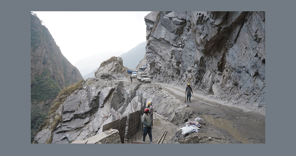 कालीगण्डकी करिडोर : काभ्रेभिरमा ‘रक एंकरिङ’ गरेर सडक विस्तार
