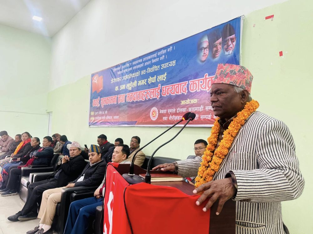 दोलखाको गौरीशंकर गाउँपालिकामा गत मंसिर १६ गते भएको उपनिर्वाचनमा एमालेको तर्फबाट निर्वाचित उपाध्यक्ष उमा लुङ्गेली मगर शेर्पालाई बधाई, शुभकामना तथा मतदाताहरूलाई धन्यवाद दिन सम्पर्क मञ्चले कार्यक्रम आयोजना गरेको थियो । कार्यक्रममा एमाले पोलिटब्युरो सदस्य तथा दोलखा इञ्चार्ज पूर्वमन्त्री पार्वत गुरुङ, पार्टी केन्द्रीय सदस्य एवम् बागमती प्रदेश सम्पर्क कमिटीकी इञ्चार्ज पूर्वमन्त्री सरस्वती बस्नेत, केन्द्रीय सम्पर्क समन्वय समितिका संयोजक श्याम कुमार बस्नेत, केन्द्रीय लेखा आयोग सदस्य शान्ति पाख्रिनलगायत विभिन्न कमिटीमा रहेका दोलखाली नेताहरूको उपस्थिति रहेको दोलखा–काठमाडौं सम्पर्क मञ्चका उपाध्यक्ष रिखी बुढाथोकीले जानकारी दिए ।