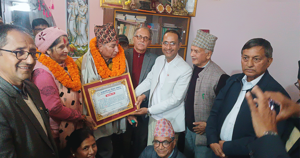चितवन । प्राध्यापक डा यज्ञप्रसाद अधिकारीलाई लोकतान्त्रिक योद्धा सम्मान प्रदान गरिएको छ । उहाँलाई आज प्रजातान्त्रिक विचार समाजका केन्द्रीय अध्यक्ष कुलचन्द्र वाग्लेले निवासमा पुगेर सम्मान गरेका छन् ।