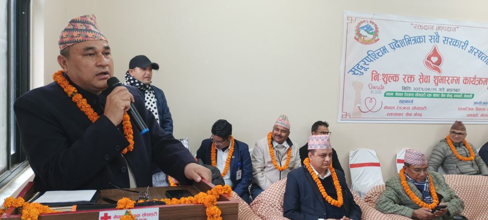 उनले भने, ‘निःशुल्क रक्त सेवा सुरुआत भएको छ । यसलाई प्रदेशका बढिभन्दा बढी जनता लाभान्वित हुनेगरी अगाडि बढाउन आवश्यक छ । यस्ता काममा प्रदेश सरकारको सधैँ सहयोग रहन्छ । हामी अति आवश्यक कुरामा सधैँ उदार छौँ । यसबाट आमजनता लाभान्वित हुने अपेक्षा छ ।’