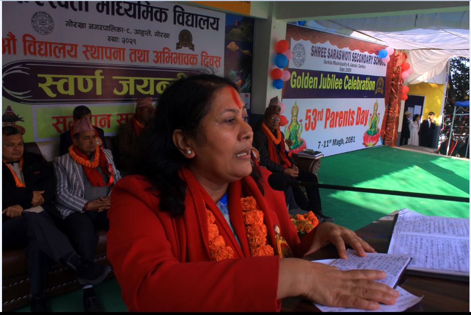 गोरखा । शिक्षा, विज्ञान तथा प्रविधिमन्त्री विद्या भट्टराईले शिक्षालाई पहिलो प्राथामिकतामा राखेर लगानी गर्न सरकार प्रतिवद्ध रहेको बताएकी छन् । गोरखा नगरपालिका–८, आहालेस्थित श्री सरस्वती माध्यामिक विद्यालयको स्वर्ण जयन्ती तथा अभिभावक दिवस समारोहको समापन कार्यक्रमलाई शुक्रबार सम्बोधन गर्नुहुँदै उहाँले शैक्षिक गुणस्तर अभिबृद्धिका लागि अहिलेको लगानी पर्याप्त नभएको उल्लेख गरिन् । ‘