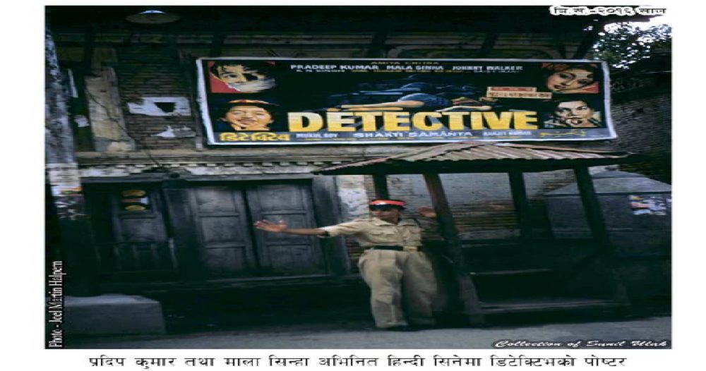 २०१६ सालमा खिचिएको यो तस्बिरमा दुई कुरालाई देख्न सक्छौ । पहिलो फिल्मको प्रचार दोस्रो त्यो बेलाको ट्राफिक प्रहरी । हिन्दी फिल्म डिटेक्टिभको पोस्टर हो यो । वि.सं. २०१४ को पुस १८ गते भारतमा रिलिज भएको यो फिल्म करिब २० महिना पछि बल्ल नेपालको सिनेमा हलमा चलेको रहेछ । जुन यहाँ राखिएको पोस्टरमा लेखिएको भाद्र १२ गते शुक्रवारबाट चल्दै छ भन्ने लेखाइले स्पष्ट गराउँछ । अर्को त्यो समय पनि नयाँ सिनेमा शुक्रवार नै रिलिज हुने रहेछ भन्ने थाहा हुन्छ ।