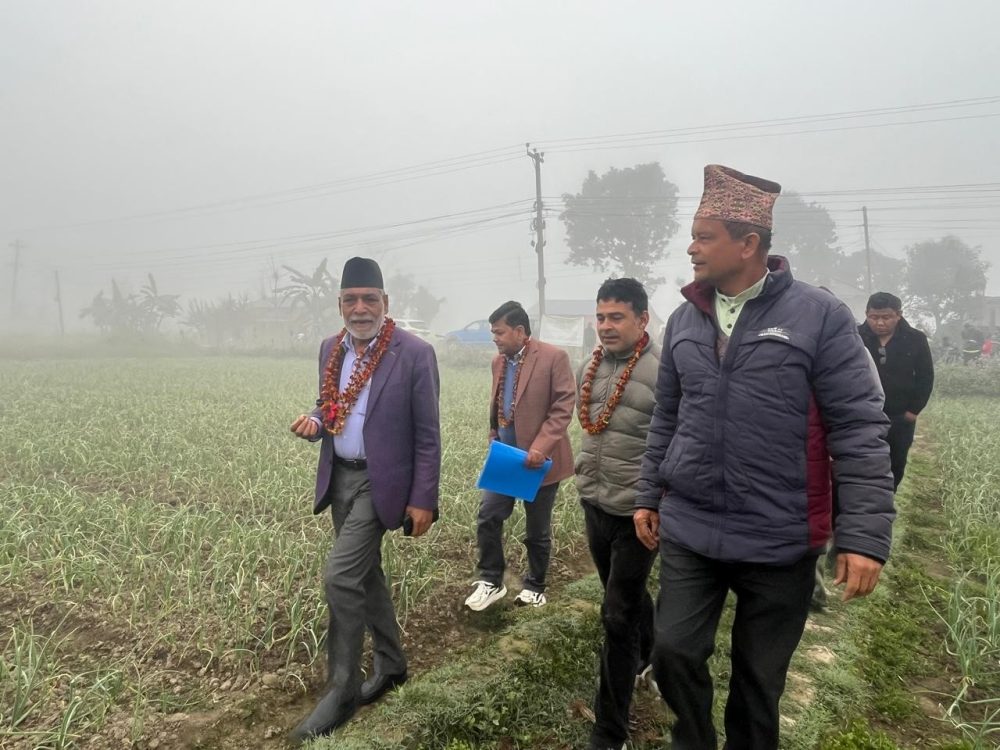 आज बिहान नवलपरासी (बर्दघाट सुस्तापूर्व) को कावासोती नगरपालिका-१५ गोडारमा कृषकले गरेको सामूहिक प्याजखेतीको अवलोकन गर्ने क्रममा मन्त्री अधिकारीले सो आग्रह गरे । ‘कृषि बालीमा धेरै विषादी प्रयोग नगरौँ, धेरै विषादी प्रयोग गर्दा आफू पनि रोगी भइन्छ,’ उनले भने, ‘आफैँले प्रयोग गरेको विषादीले आफैँलाई रोग पनि लाग्छ, आफू पनि निरोगी बन्नुपर्यो ।’