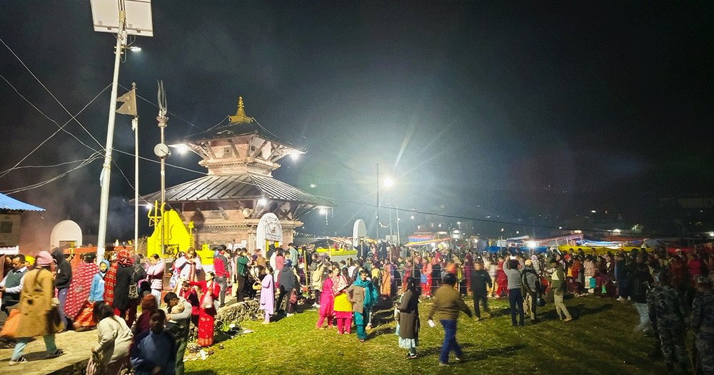 सुन्दरबजार (लमजुङ) । शिवरात्रिमा रातभर उभिएर महादेवको नाउँमा बत्ती बाल्दा सन्तान प्राप्ति हुने विश्वासका कारण यहाँको ईशानेश्वर महादेव मन्दिरमा बत्ती बाल्न आज देशका विभिन्न स्थानबाट भक्तजनहरु करापुटार आइपुगेका छन् ।