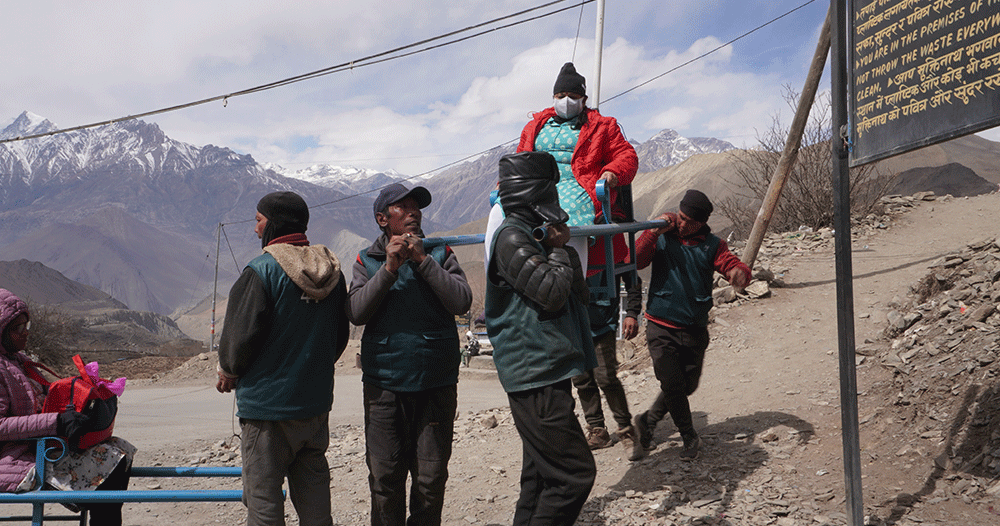 यसैगरी मुक्तिनाथमा युवाहरूले घोडा चढ्न नसक्ने अवस्थाका दर्शनार्थीलाई स्टेचरमा बोकेर मुक्तिनाथ लाने लैजाने गर्छन् । मुक्तिनाथ बसपार्कबाट मुक्तिनाथ मन्दिर लाने लैजाने गरेबापत उनीहरूले नेपाली दर्शनार्थीलाई रू चार हजार र भारतीय दर्शनार्थीलाई भारू चार हजार लिने गर्छन् । यसरी मुक्तिनाथमा स्टेचर बोकर लैजान चार जना युवाको आवश्यकता पर्छ । मुक्तिनाथमा स्थानीय युवाहरूले सञ्चालन गरेको स्टेचरमा राखेर मुक्तिनाथ लानेलैजाने व्यवसायले ज्येष्ठ नागरिक, अशक्त र अपाङ्गता भएका दर्शनार्थीलाई निकै ठूलो सहयोग मिलेको छ । सशुल्क सेवा भए पनि मुक्तिनाथ दर्शन गर्न जाने यस प्रकारको व्यवसायले मुक्तिनाथ दर्शन गर्न लाखौँ खर्चिएर आउने दर्शनार्थी भक्तजनका लागि निकै ठूलो सेवा सहयोगको माध्यम बनेको छ । रासस