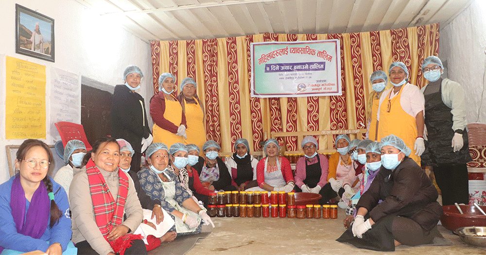 गाउँघरमा पाउने कच्चा पदार्थको सदुपयोग गर्दै व्यावसायिकसँगै उद्यमशील बनाउन २७ महिलालाई अचार बनाउने सीप प्रदान गरिएको छ ।