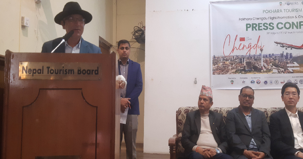 आगामी तीन महिनासम्मको अवधिमा करिब एक हजार २५० जना चिनियाँ पर्यटक चीनको सिचुवान प्रदेशबाट हवाईमार्गबाट सीधा पोखरा अन्तर्राष्ट्रिय विमानस्थलमा अवतरण गराउन प्रयासरत रहेको चिनियाँ दूतावास, सिचुवान एयरलाइन्स र चाइना ट्राभल इन्टरनेसनल छेन्दुले जानकारी गराएको उनले बताए ।