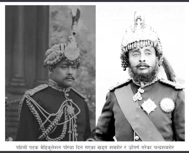 तस्विरमा पहिलो पटक म्याट्रिकुलेशन परिक्षा दिन कलकत्ता पुगेका खड्गशमशेर र उतिर्ण भएका चन्द्रशमशेर ।