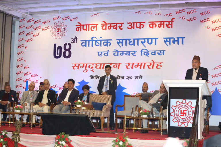चेम्बर अफ कमर्सको ७४ औं वार्षिक साधारणसभालाई सम्वोधन गर्दै अध्यक्ष अग्रवालले भने, ‘अन्तराष्ट्रियस्तरको प्रर्दशनी केन्द्र स्थापना गर्न सकियो भने स्थानीय उत्पादनहरुको एकीकृत प्रर्वद्धन, बजारीकरण एवं एक द्धार प्रणाली मार्फत गुणस्तर मापन गर्न सकिन्छ, ।’ रेमिट्यान्सबाट भित्रिने रकमलाई उत्पादनमुलक क्षेत्रमा लगाउने गरी नीतिगत व्यवस्था गर्र्नुपर्ने अध्यक्ष अग्रवालले बताए । उनले भने, ‘रेमिट्यान्सको झण्डै ९० प्रतिशत हिस्सा उपभोगमै खर्च भईरहेको सन्दर्भमा अर्थतन्त्रको विस्तारमा योगदान गर्नेगरी उत्पादनमुलक क्षेत्रमा लगानीको वातावरण बनाउनुपर्दछ, ।’