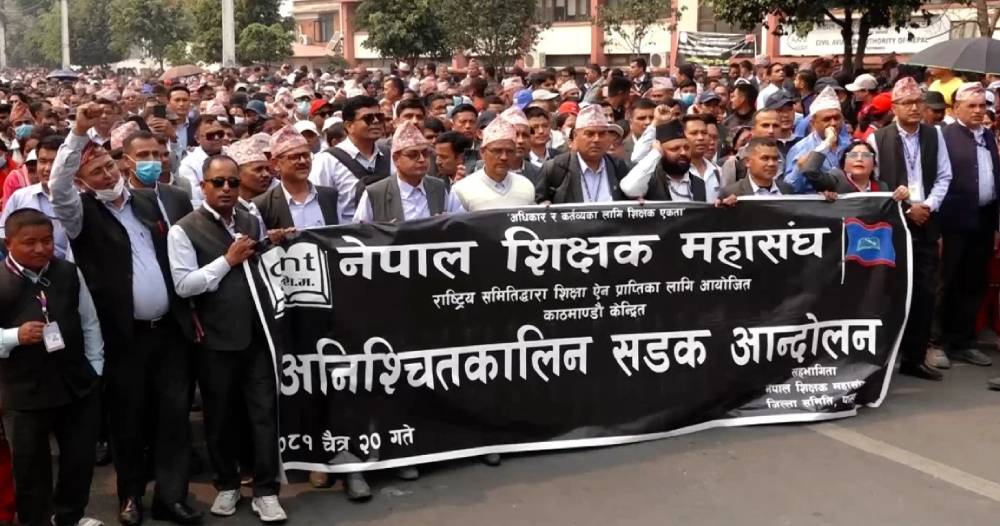 विद्यालय शिक्षा ऐन जारी गर्न माग राख्दै शिक्षक महासंघकाे निरन्तर आन्दोलन