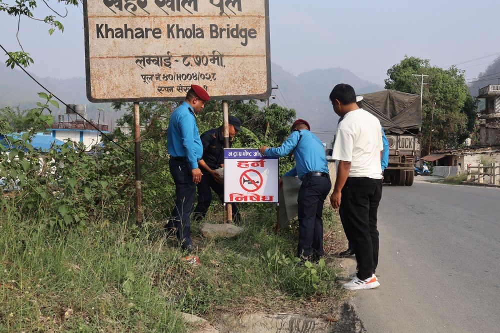 प्रहरीले बजारका विभिन्न ठाउँमा आज ‘नो हर्न’ सम्बन्धी सूचना राखेको छ । प्रहरी निरीक्षक सुवेदीले बजार क्षेत्रलाई ध्वनी प्रदूषणमुक्त बनाउने र दुर्घटनाको जोखिम घटाउने उद्देश्यसहित ‘नो हर्न’ घोषणा गर्दै सूचना बोर्डहरू राखिएको जानकारी दिए ।