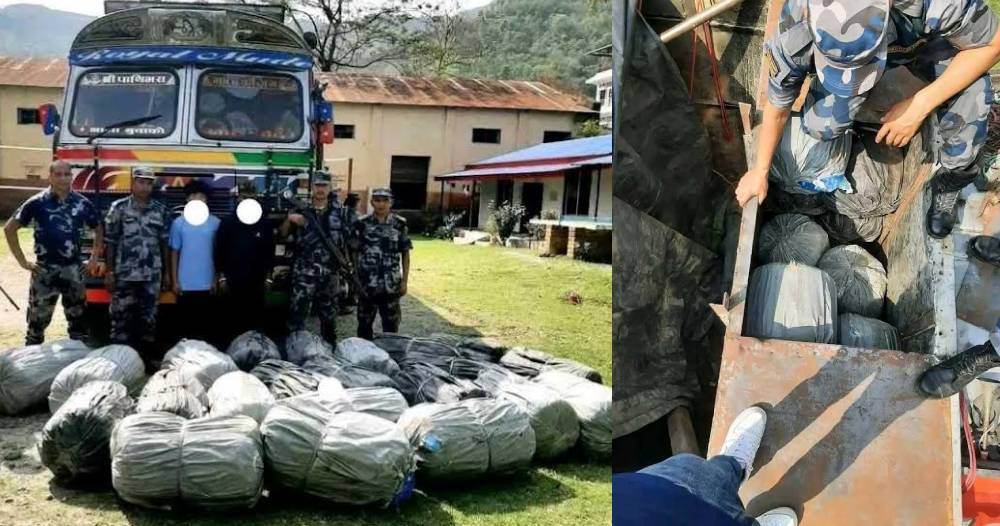 ट्रकको ड्राइबर सिटमाथी बक्सा बनाएर २२ वटा पोकामा लुकाइ छिपाइ ल्याउंदै गरेको गांजा सहितको ट्रक, चालक सुनसरी जिल्ला बराहक्षेत्र नगरपालिका–१ बस्ने ३१ बर्षका मनोज परियार र सहचालक धनकुटा जिल्ला सिदुवा नगरपालिका-६ बस्ने १८ बर्षका आकाश राईलाई समेत नियन्त्रणमा लिइएको छ ।