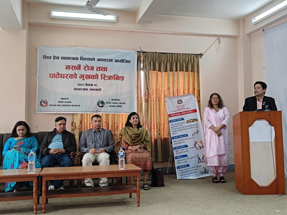 नेपाल पत्रकार महासङ्घका अध्यक्ष निर्मला शर्माले समाचारलाई पहिलो प्राथमिकतामा राख्ने पत्रकारहरुले स्वास्थ्यको ध्यान सोचेजस्तो राख्न नसकेको बताए ।