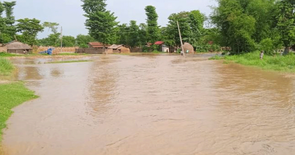 बाढीको त्रास : लठ्ठागौरीका बासिन्दा त्रिपाल टाँगेर बस्न बाध्य