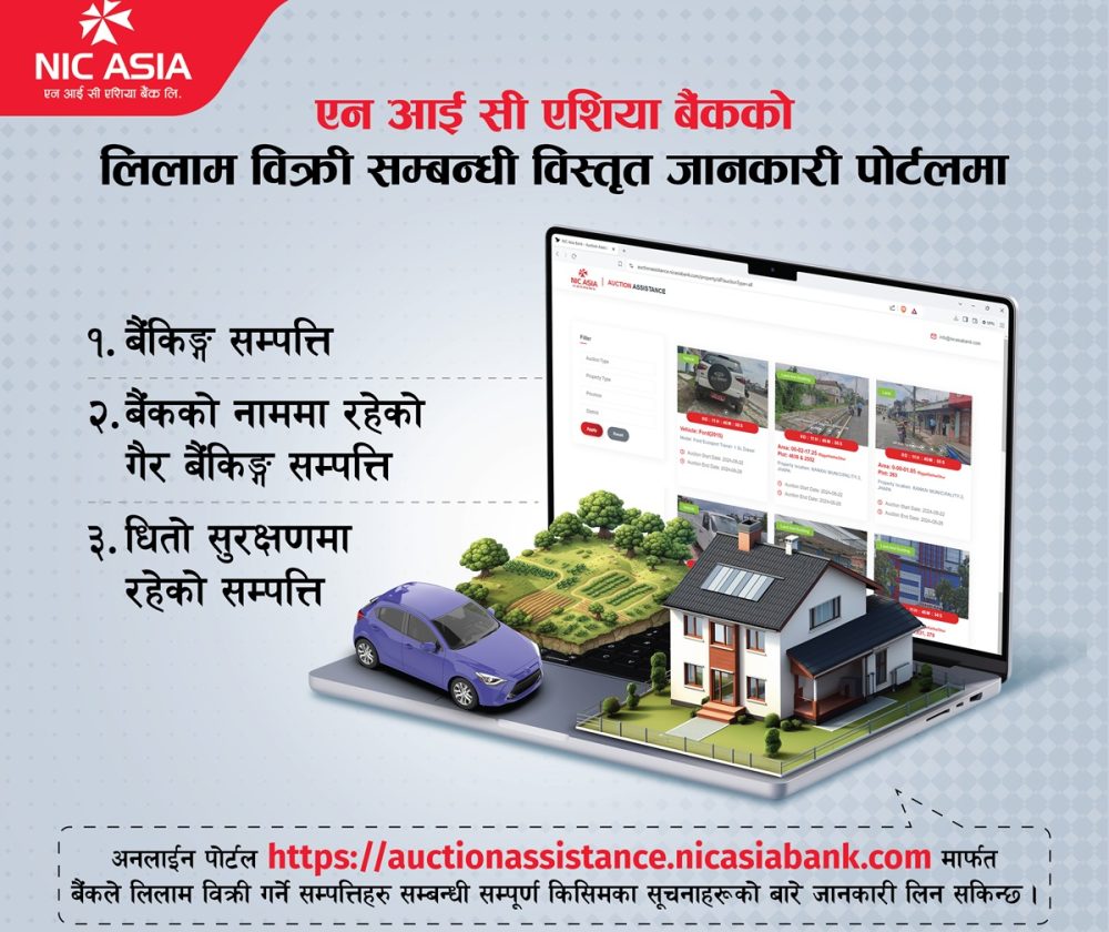 एनआइसी एसिया बैंकले गर्ने लिलाम बिक्री अब पोर्टलमा हेर्न सकिने