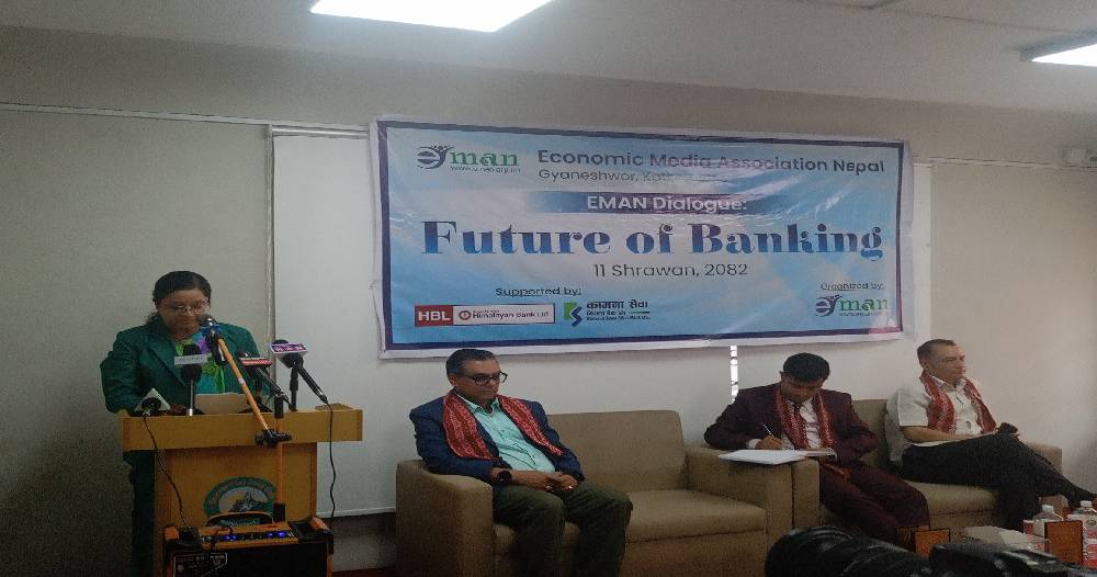 आर्थिक मिडिया एसोसिएसन नेपाल (इमान)द्वारा आज यहाँ आयोजित ‘इमान संवादः फ्युचर अफ बैंकिङ’ छलफलमा उनले बैंकिङ क्षेत्रलाई आधुनिक प्रविधिमैत्री, पारदर्शी र जनता केन्द्रित बनाउँदै सेवा प्रवाहलाई चुस्तदुरुस्त बनाउनुपर्नेमा जोड दिए । उनले भने, डिजिटल वित्तीय सेवाको द्रुत विकास र ग्राहकमैत्री प्रणालीको विकासले बैंकिङ क्षेत्रको भविष्य निर्धारण गर्नेछ ।