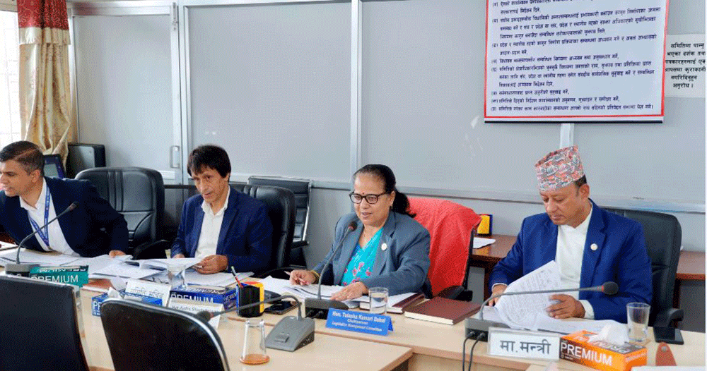समितिको आजको बैठकमा सो ऐनको परिच्छेद ९ अन्तर्गत विभिन्न दफामाथि छलफल भएको सभापति तुलसाकुमारी दाहालले जानकारी दिए ।