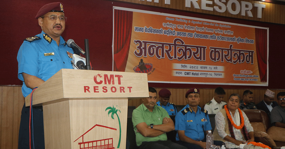 नारायणगढ (चितवन) । नेपाल प्रहरीका प्रहरी महानिरीक्षक दीपक थापाले मानव बेचबिखन नियन्त्रणका लागि सरोकारवाला निकायबीचको साझेदारी अपरिहार्य रहेको बताएका छन् ।