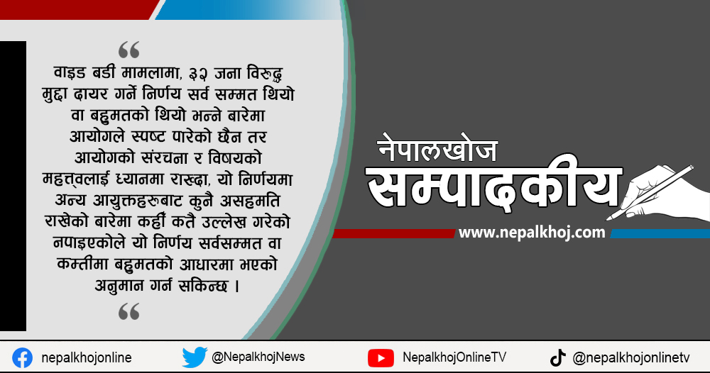 वाइड बडी मामलामा, ३२ जना विरुद्ध मुद्दा दायर गर्ने निर्णय सर्व सम्मत थियो वा बहुमतको थियो भन्ने बारेमा आयोगले स्पष्ट पारेको छैन तर आयोगको संरचना र विषयको महत्त्वलाई ध्यानमा राख्दा, यो निर्णयमा अन्य आयुक्तहरूबाट कुनै असहमति राखेको बारेमा कहीँ कतै उल्लेख गरेको नपाइएकोले यो निर्णय सर्वसम्मत वा कम्तीमा बहुमतको आधारमा भएको अनुमान गर्न सकिन्छ ।