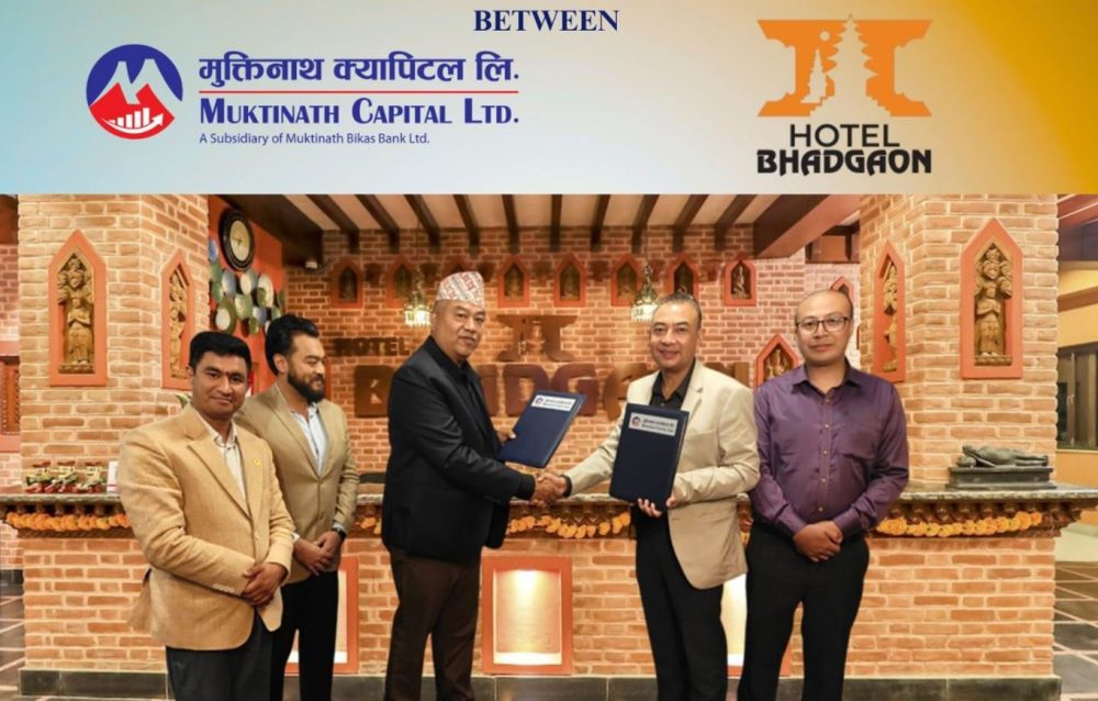 यसै सन्दर्भमा, आयोजित एक औपचारिक कार्यक्रममा होटल भादगाउँ एण्ड रिर्सोटको तर्फबाट प्रबन्ध निर्देशक निहाल राजभण्डारी र मुक्तिनाथ क्यापिटलको तर्फबाट प्रमुख कार्यकारी अधिकृत कबिन्द्र ध्वज जोशीले सम्झौतापत्रमा हस्ताक्षर गरेका छन् ।