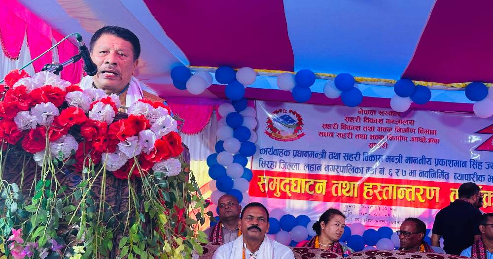 लहानमा निर्माण सम्पन्न भएको नयाँ व्यापारिक भवनको आज यहाँ एक समारोहबीच उद्घाटन गर्दै कार्यवाहक प्रधानमन्त्री सिंहले चुरेको दीर्घकालीन संरक्षणले मधेसमा देखिएको वातावरणीय समस्या समाधान हुने उल्लेख गरे ।