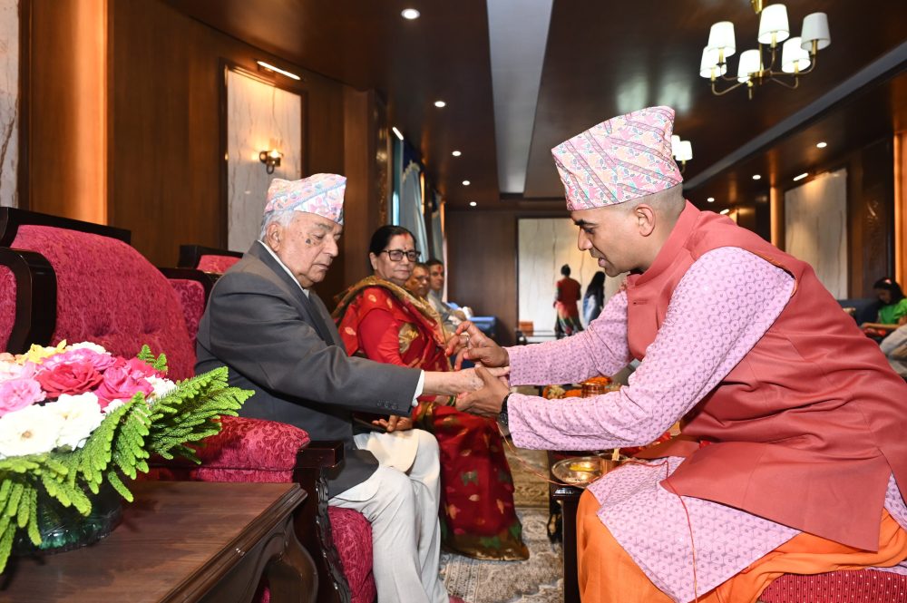 काठमाडौं । राष्ट्रपति रामचन्द्र पौडेलले रक्षाबन्धन तथा जनैपूर्णिमाको अवसरमा आज वैदिक विधिअनुसार नवयज्ञोपवित (जनै) एवं रक्षाबन्धन ग्रहण गरेका छन् ।