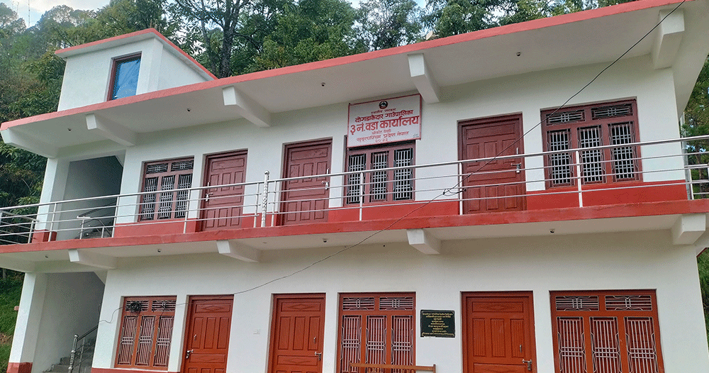 बैतडी । जीर्ण अवस्थामा रहेका वडा कार्यालय भवन नयाँ बनाउन दोगडाकेदार गाउँपालिकाले उच्च प्राथमिता दिएको छ । हालसम्म गाउँपालिकाका छवटा वडा कार्यालय रु दुई करोड ४८ लाखमा नयाँ निर्माण गरिएका हुन् ।