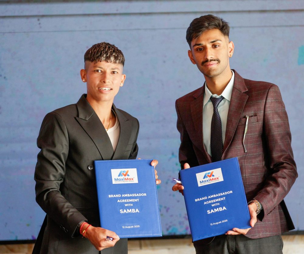 काठमाडौं । म्याक्सिम्याक्स एजुकेशन एण्ड माइग्रेसन सर्भिसेसले नेपाली महिला फुटबल टोलीकी कप्तान सवित्रा भण्डारी ‘साम्बा’ लाई ब्रान्ड एम्बेसडर नियुक्त गरेको छ । साम्बा र म्याक्सिम्याक्सका प्रबन्ध निर्देशक रोजन दनैले आज सम्झौतापत्रमा हस्ताक्षर गरे ।