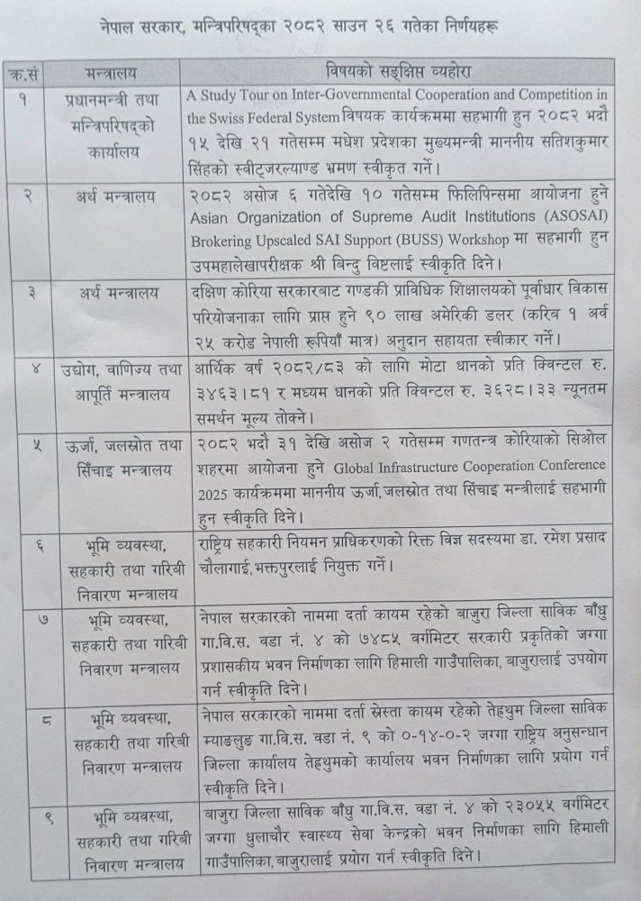 यस्ता छन् मन्त्रिपरिषद् बैठकका १८ निर्णय