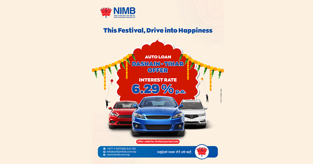 आगामी दशैँ, तिहार तथा छठ पर्वलाई लक्षित गर्दै ल्याइएको यस योजनाले चाडपर्वको उत्सवमा नयाँ गाडीको सपना पुरा गर्न चाहने ग्राहकवर्गहरुलाई थप सहजता हुने बैंकले अपेक्षा गरेको छ ।