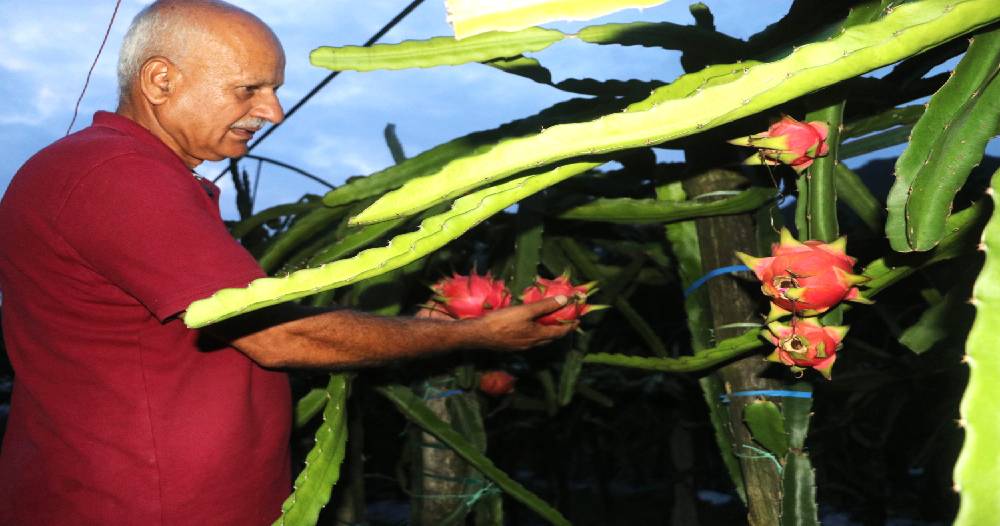 सेवा निवृत्तिपछि ड्रागन खेतीमा रमाउँदै त्रिपाठी