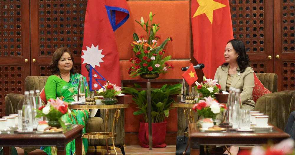 काठमाडौं । समाजवादी गणतन्त्र भियतनामका उपराष्ट्रपति भो थि आन सुआनसँग परराष्ट्रमन्त्री डा आरजु राणा देउवाले आज यहाँ शिष्टाचार भेटवार्ता गरेका छन् । उपराष्ट्रपति रामसहायप्रसाद यादवको मैत्रीपूर्ण निमन्त्रणामा नेपालको तीनदिने औपचारिक भ्रमणका लागि आज काठमाडौं आएकी उपराष्ट्रपति भोसँग मन्त्री डा राणाले भेटवार्ता गरेका हुन् ।