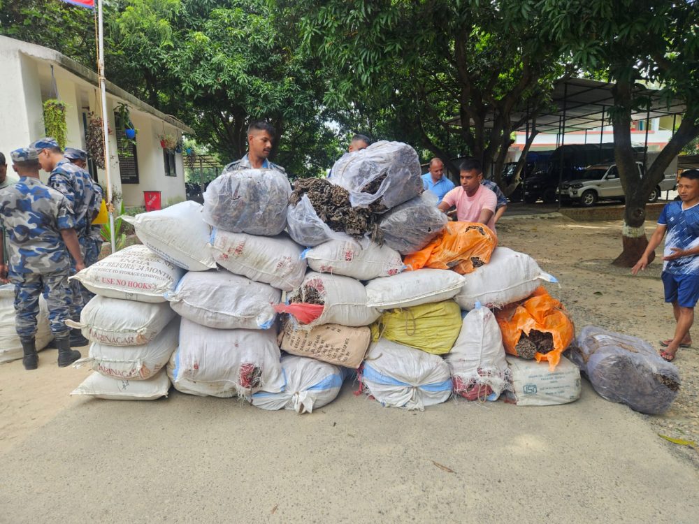 सशस्त्र प्रहरी बल रौतहटद्वारा ३० बोरा सुर्ती बरामद