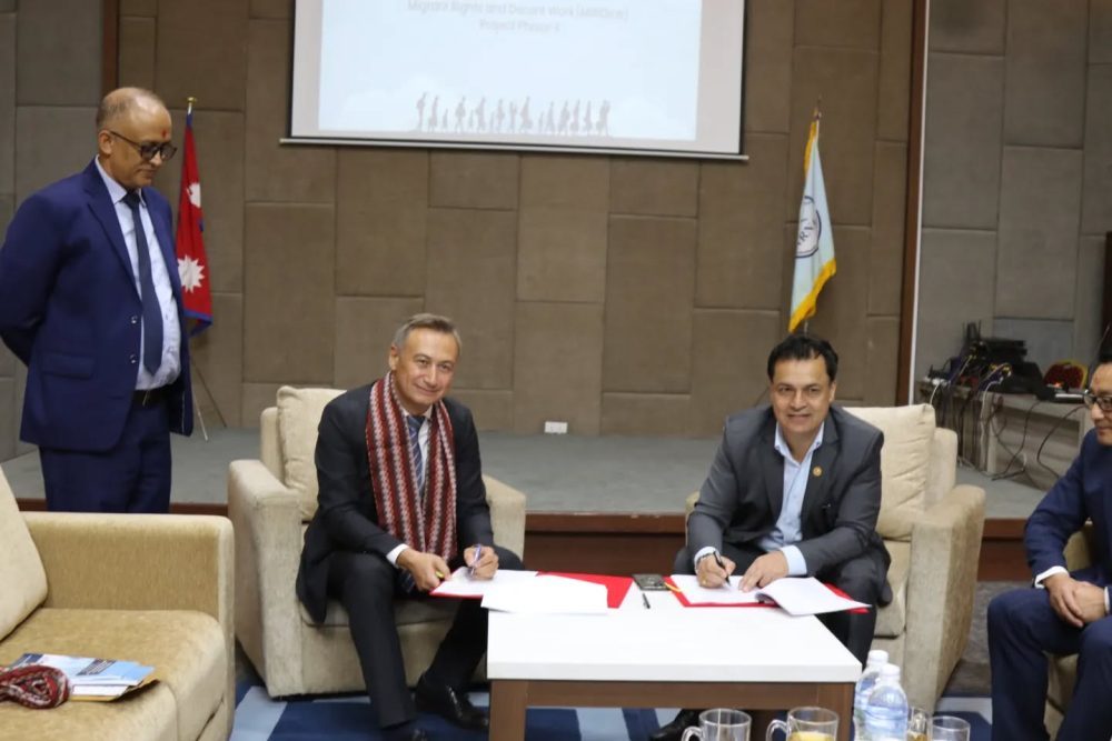 संघको सचिवालयमा मंगलबार (२०८२ साल भाद्र १० गते तदनुसार २६ अगस्त २०२५ ) स्वीस विकास तथा सहयोग संस्थाको सहयोगमा सञ्चालित ‘माइग्रेन्ट राइट्स एण्ड डीसेंट वर्क परियोजना दोस्रो चरणको कार्यान्वयनका लागि दुई संस्थाबीच सम्झौता भएको हो । आईएलओ नेपालका निर्देशक नुमान ओजकान र एनआरएनएका अध्यक्ष डा. बद्री केसीले सम्झौतापत्रमा हस्ताक्षर गरेका हुन ।