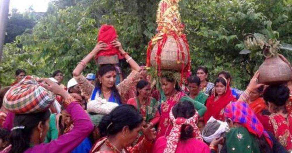 Amargadhi . One of the biggest festivals of Sudurpaschim Province, Gaura, has begun today. On the first day of the festival, it is customary for women who fast today to start Gaura by soaking Biruda (five types of grains and legumes).