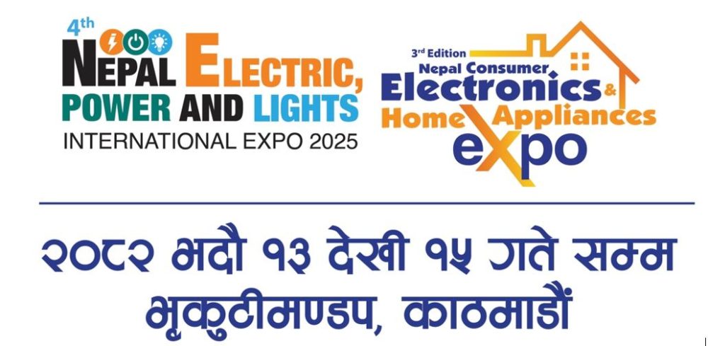 काठमाडौं । मिडिया स्पेस सोल्युसनस्, फ्युचरेक्स ट्रेड फेर एण्ड इवेंट्स, तथा एक्जीबीसन एंड ट्रेड सर्विसेस इंडिया प्रा. लि.को सयुक्त आयोजनामा यही भाद्र १३, १४ र १५ गते काठमाडौंको भृकुटीमण्डपमा नेपाल इलेक्ट्रिक पावर एण्ड लाइटस् तथा नेपाल कन्जुमर इलेक्ट्रोनिक्स एंड होम अपलायनसेस अन्तर्राष्ट्रिय प्रदर्शनीको चौथो संस्करण आयोजना हुन गइरहेकोे छ ।