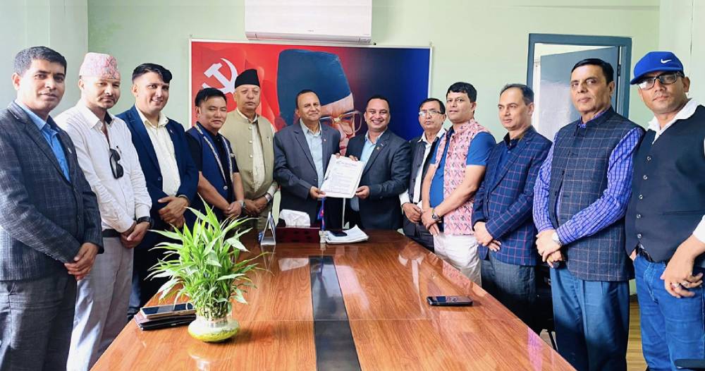 ललितपुरको च्यासलस्थित एमाले केन्द्रीय कार्यालयमा पार्टी महासचिव शङ्कर पोखरेलसमक्ष प्रेस चौतारीका अध्यक्ष गणेश पाण्डे नेतृत्वको टोलीले महाधिवेशनको विधान संशोधन प्रतिवदेनमा समेट्नुपर्ने सुझावसहितको पत्र बुझाएको हो ।