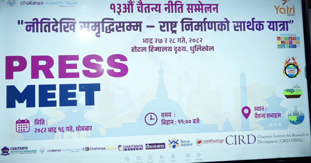 उक्त संस्थाले विगत १३ वर्षदेखि नीति संवादका माध्यमबाट देशको समसामयिक प्राथमिकता र दीर्घकालीन सम्भावनालाई उजागर गर्ने उद्देश्यले नीति सम्मेलनको आयोजना गर्दै आएको जनाएको छ । यही परम्परालाई निरन्तरता दिँदै, यसवर्ष पनि १३औँ चैतन्य नीति सम्मेलन ‘नीतिदेखि समृद्धिसम्म राष्ट्र निर्माणको सार्थक यात्रा’ भन्ने मूलभावका साथ आयोजना गर्न लागेको हो ।